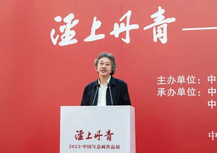 马锋辉致辞并宣布“泾上丹青——2023·中国写意画作品展”开幕。他表示,自2017年起,每两年举办一届的“泾上丹青”系列美术作品展览已经成为中国美协与地方政府合作的品牌展览活动之一,得到了社会的广泛关注与好评,在全国美术界具有一定影响力。本届“泾上丹青——2023·中国写意画作品展”作为一个以写意精神为核心的展览,以推动当代中国写意画守正创新为目标,是学习贯彻党的二十大精神和习近平新时代中国特色社会主义思想的具体举措。