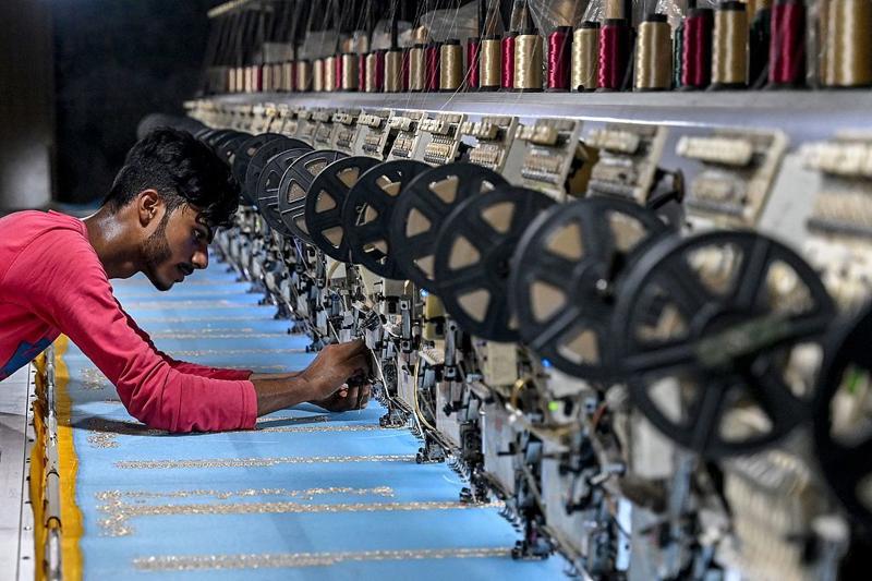 巴基斯坦拉合尔的工人在操作工业刺绣机。(视觉中国)